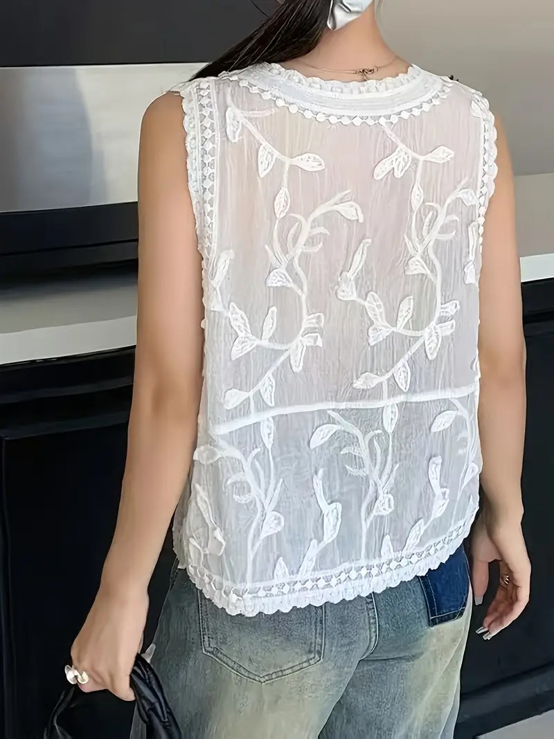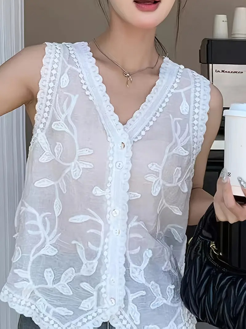 La Blusa «Flor de Lino» es un reflejo de textura, frescura y movimiento. Su diseño sin mangas con corte amplio en línea A favorece la silueta y aporta comodidad durante todo el día. El tejido presenta un trabajo texturizado tipo pliegue con ondas en relieve que dan un aire artesanal y contemporáneo. Ideal para combinar con pantalones plisados o faldas fluidas, es una prenda que realza la naturalidad sin esfuerzo. Perfecta para mujeres que buscan elegancia relajada y estilo atemporal.
