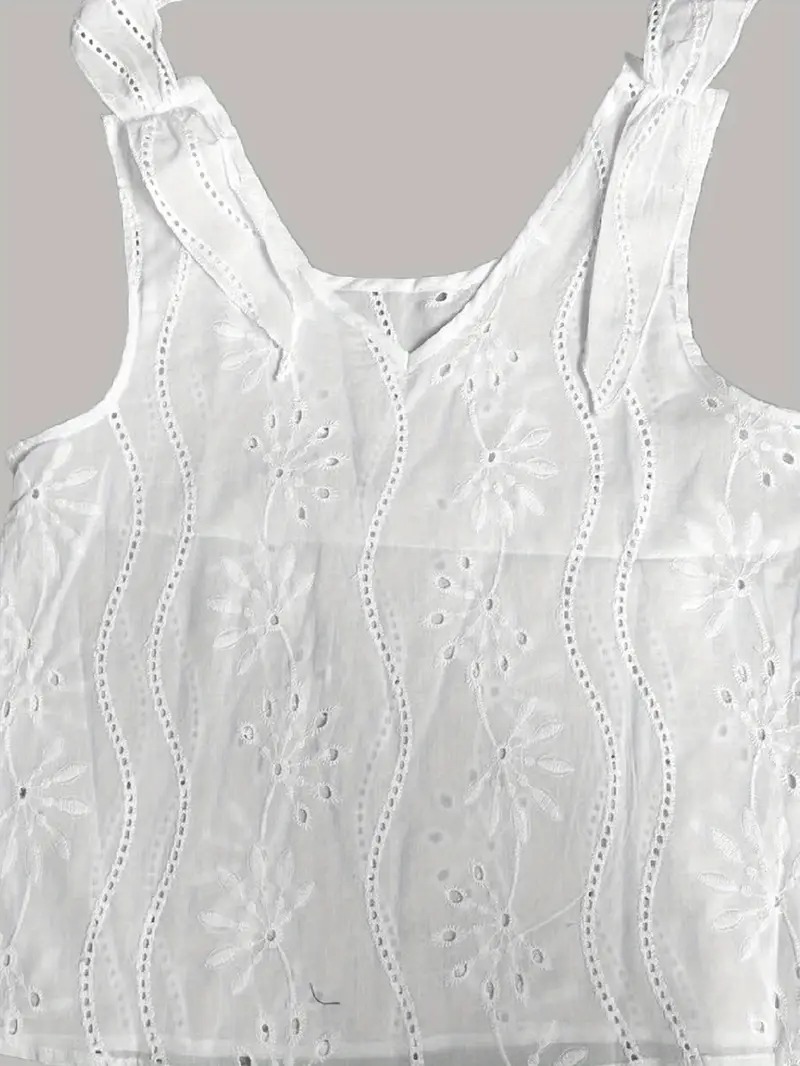 Romántica y fresca, la Blusa Lirio es una pieza que enamora con sus delicados bordados florales y detalles calados. Su escote en «V» y lazos en los hombros añaden un toque femenino y versátil, ideal para climas cálidos y momentos casuales con estilo.