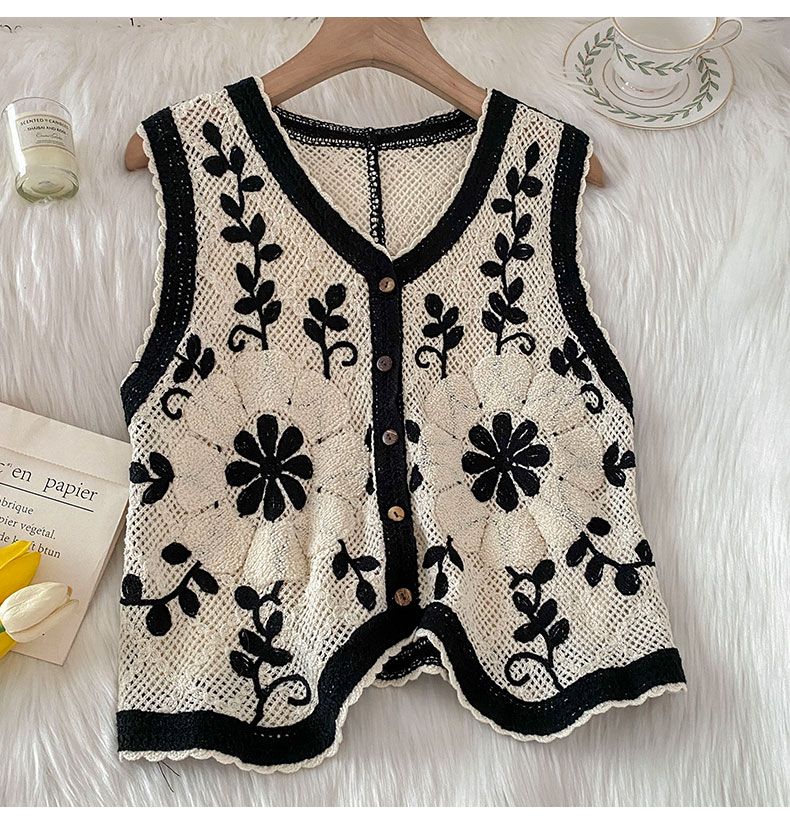 Chaleco de ganchillo para mujer con bordado de flores, blusa sin mangas frontal con botones, chaleco de punto abierto, traje de vacaciones de verano.