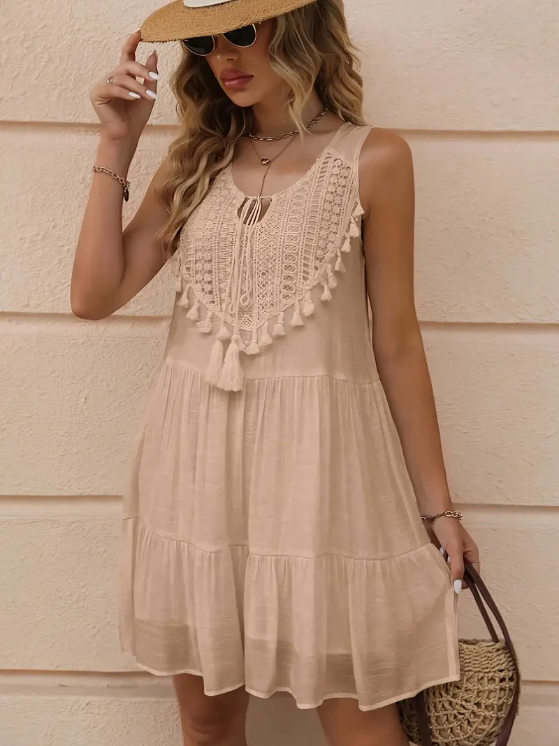 Vestido Borlas y Crochet sin Mangas de Volantes